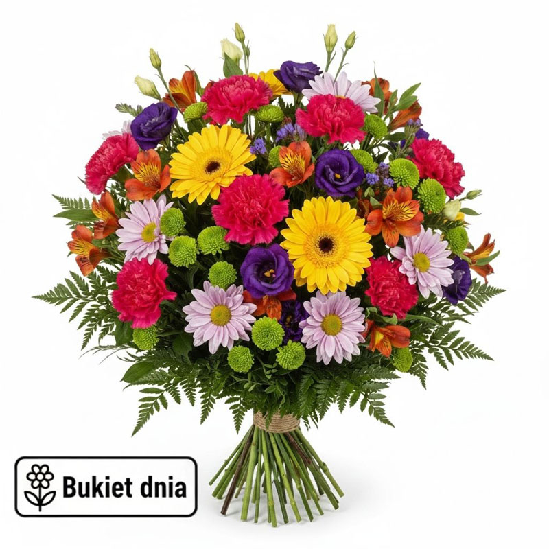 Bukiet Dnia to codziennie nowa kompozycja kwiatowa przygotowywana przez doświadczoną florystkę. Każdy bukiet tworzony jest z aktualnie dostępnych kwiatów, a jego wygląd pozostaje miłą niespodzianką. Florystka wykorzystuje zarówno kwiaty sezonowe, jak i całoroczne, tworząc estetyczną i spójną całość. Bukiet Dnia to idealna propozycja, gdy zależy Ci na świeżych kwiatach i szybkim czasie realizacji. Zamów bukiet z dostawą na terenie Szczecina i pozwól nam zadbać o każdy detal.